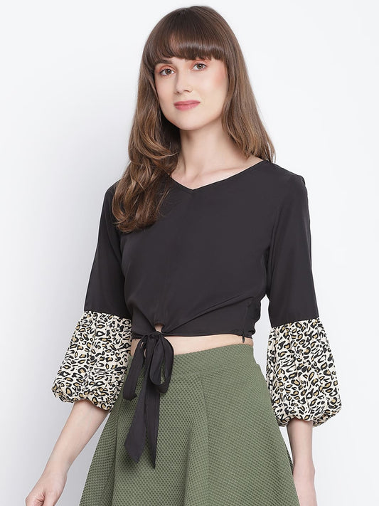 Draax Fashions Women Black Casual Side Knot Top