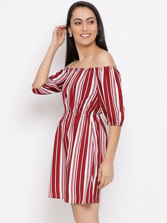 Draax Fashions Women Multi Red Stripe Sheath Dress