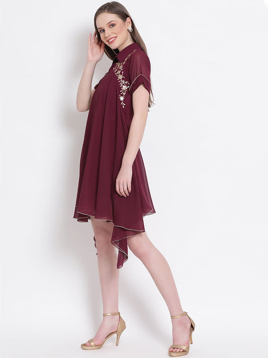 Draax Fashions Women Maroon Flare Dress