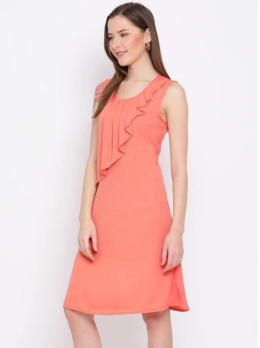 Draax Fashions Women Orange Embellished Fit And Flare Dress