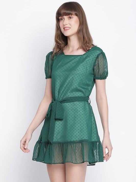 Draax Fashions Women Green Net Flared A-Line Dress
