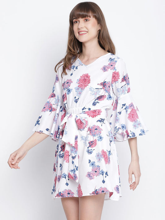 Draax Fashions Women White Floral Printed A-Line Dress
