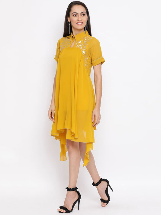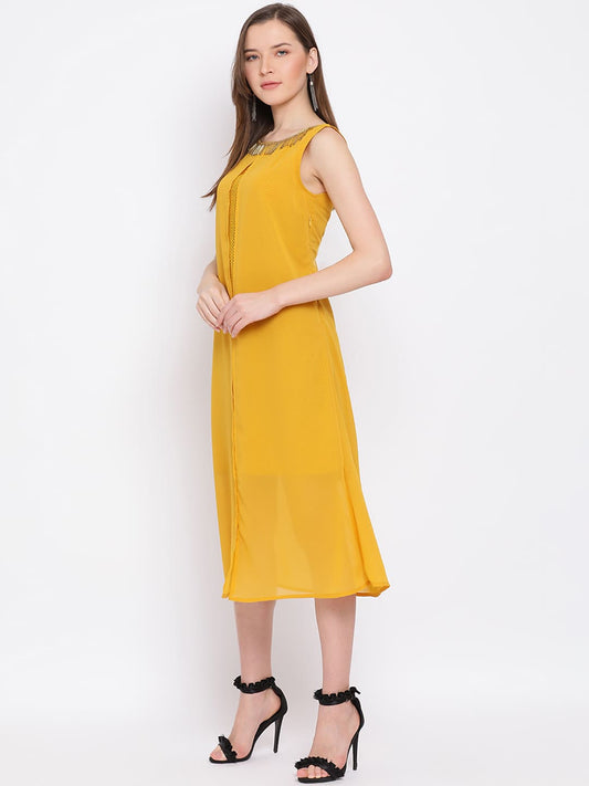 Draax Fashions Women Yellow Solid Embellished Dress