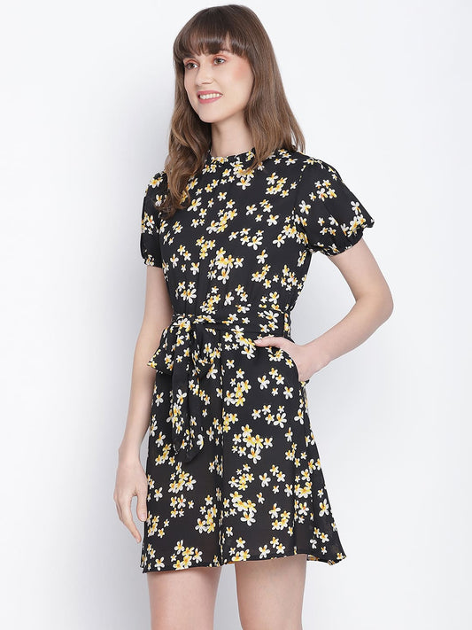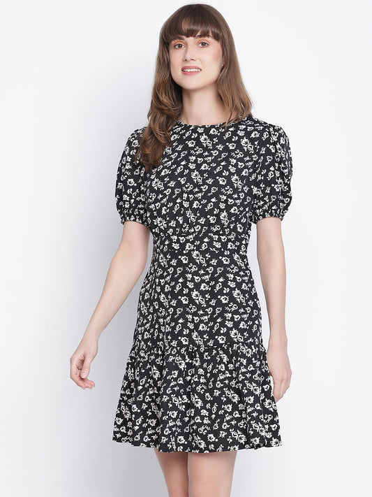 Draax Fashions Women Black Floral A-Line Dress