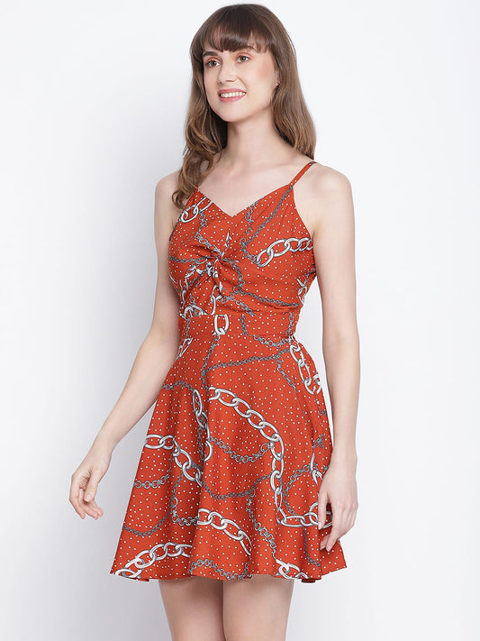 Draax Fashions Women Rust Red Printed Dress