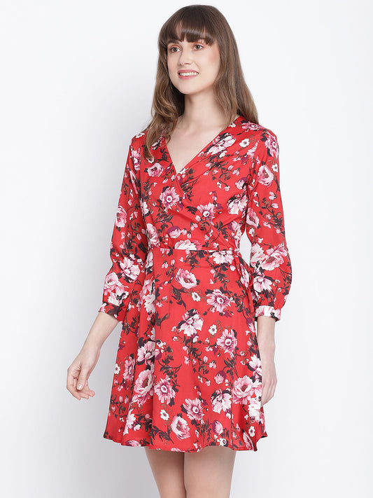 Draax Fashions Women Red Floral A-Line Dress