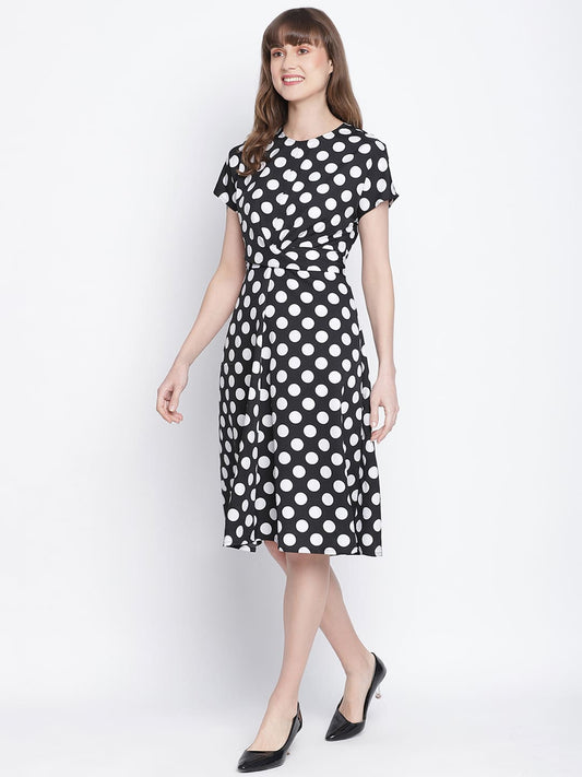 Draax Fashions Women Black A-Line Dress With White Polka Dots
