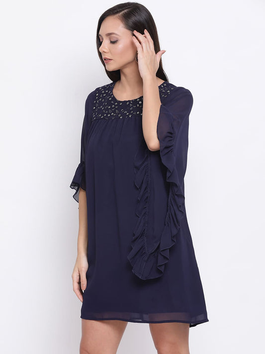 Draax Fashions Women Blue Embellished Fit And Flare Dress