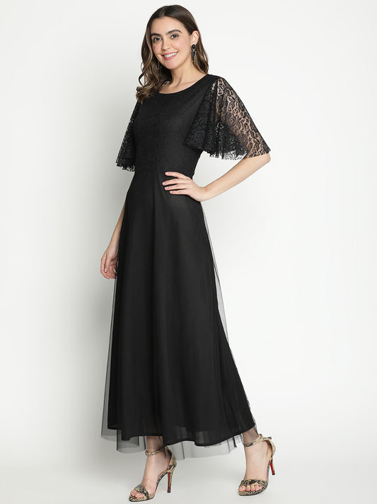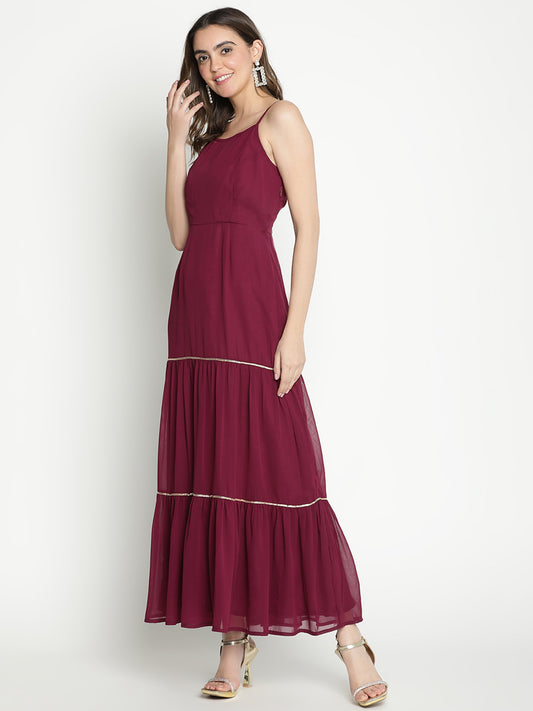 Draax Fashions Women Black And Maroon Sequinned Party Wear Dress