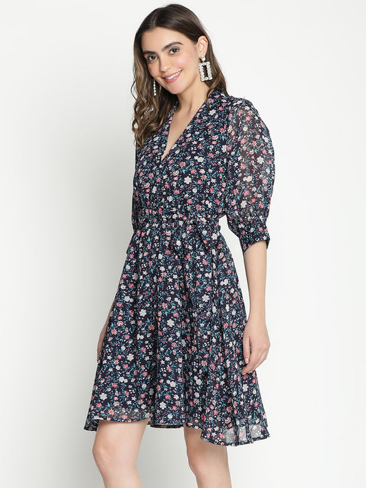 Draax Fashions Women Trending Navy Blue A-Line Dress