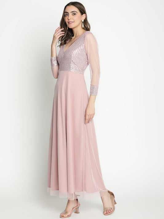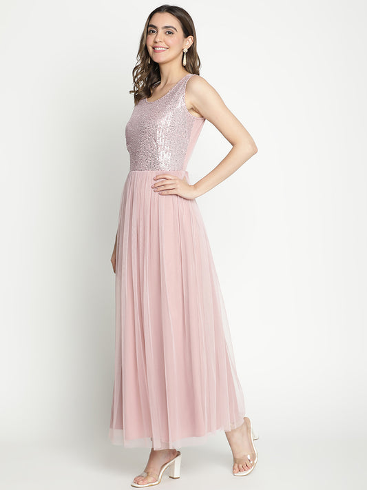 Draax Fashions Women Pink Party Wear Sequined Dress