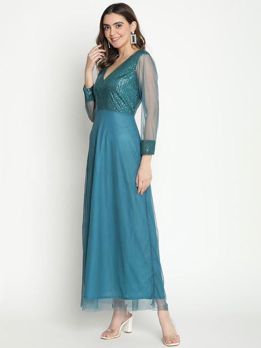 Draax Fashions Women Grey Sequined Partywear Long Dress
