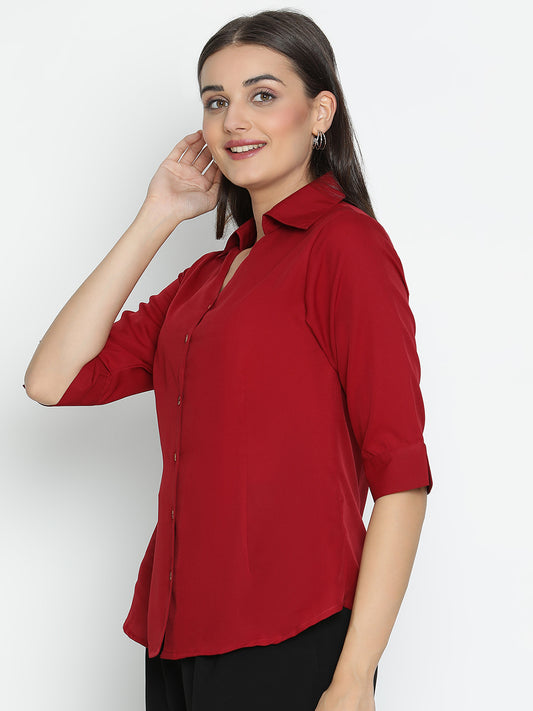 DRAAX FASHIONS Womens Quater Sleeves Collared Shirt Style Top