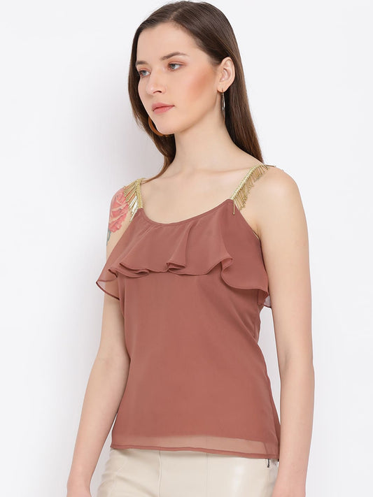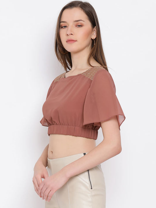 Draax Fashions Women Brown Embellished Top