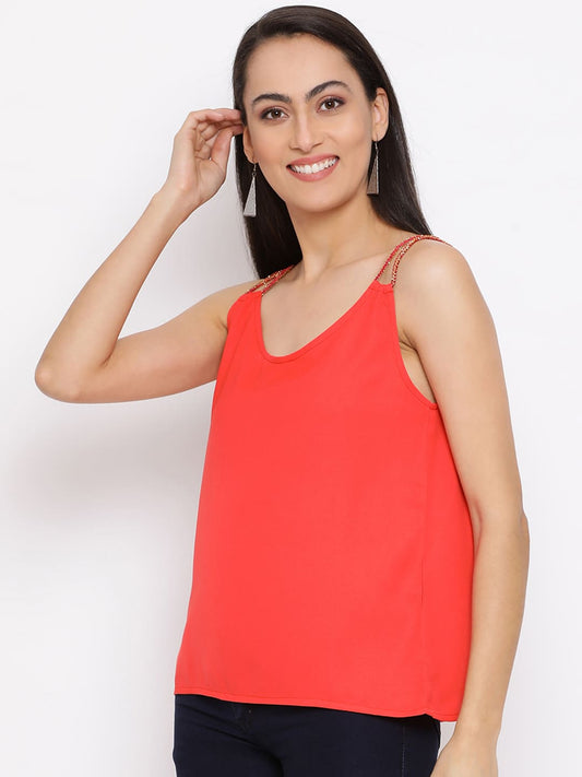 Draax Fashions Women Red Embellished Top