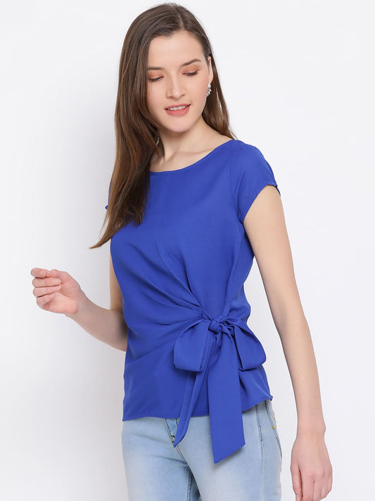 Draax Fashions Women Blue Cinched Waist Top
