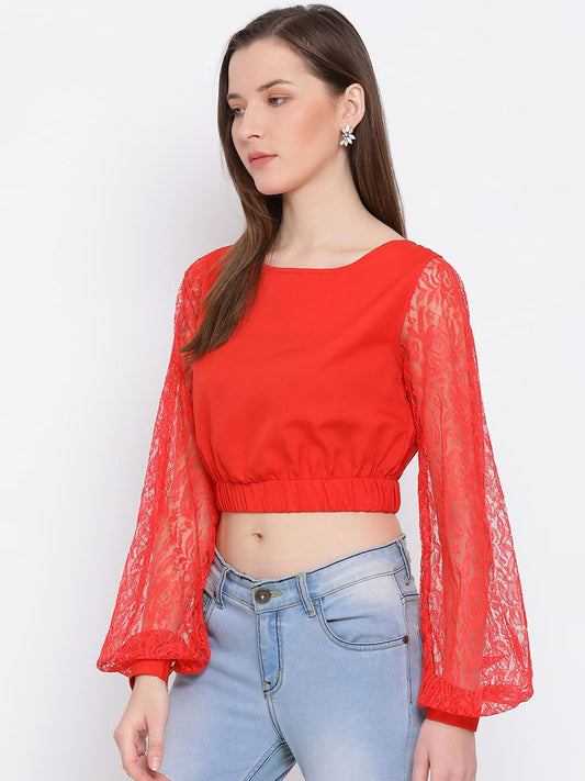 Draax Fashions Women Red Solid Skater Crop Top
