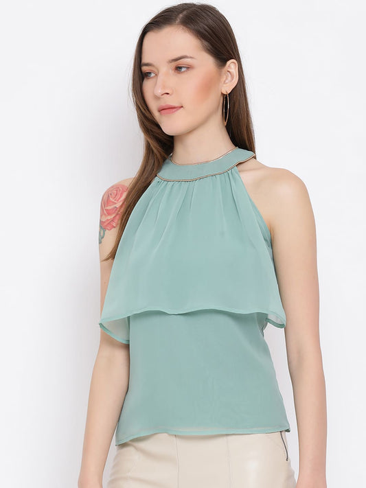 Draax Fashions Women Halter Neck Green Top