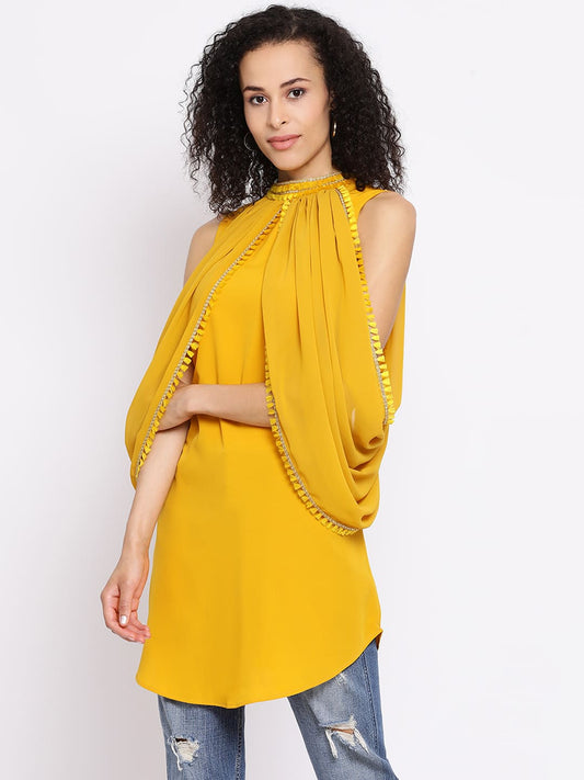 Draax Fashions Women Yellow Chevron Lace Cape Top