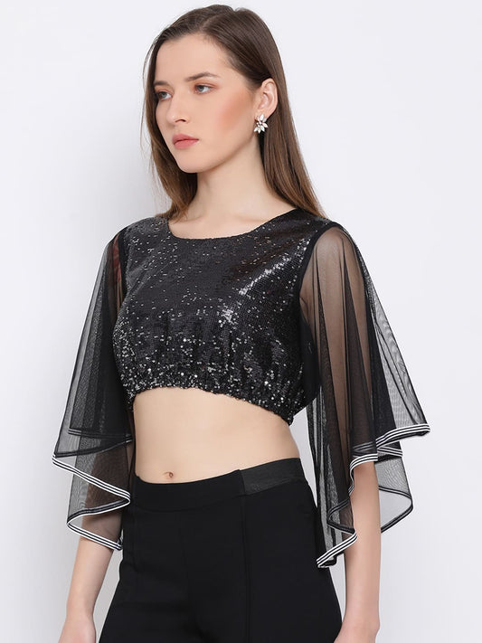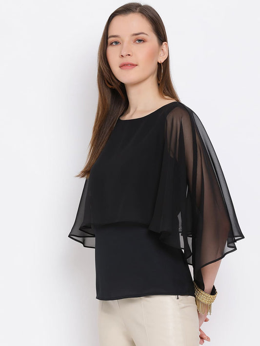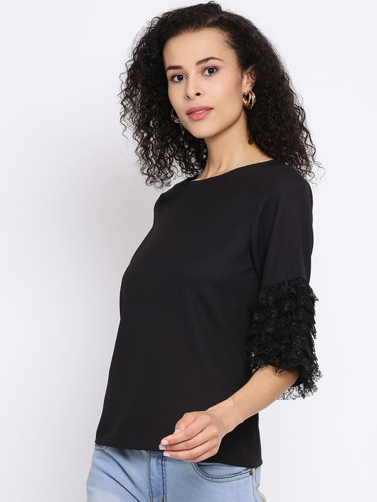 Draax Fashions Women Black Solid Top With Net Sleeves