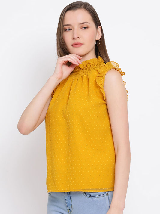 Draax Fashions Women Yellow Spaghetti Embellished Top