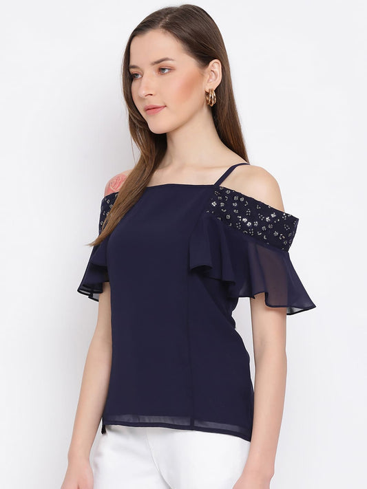 Draax Fashions Women Blue Embellished Top