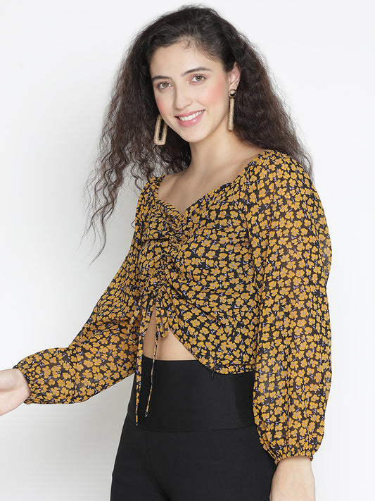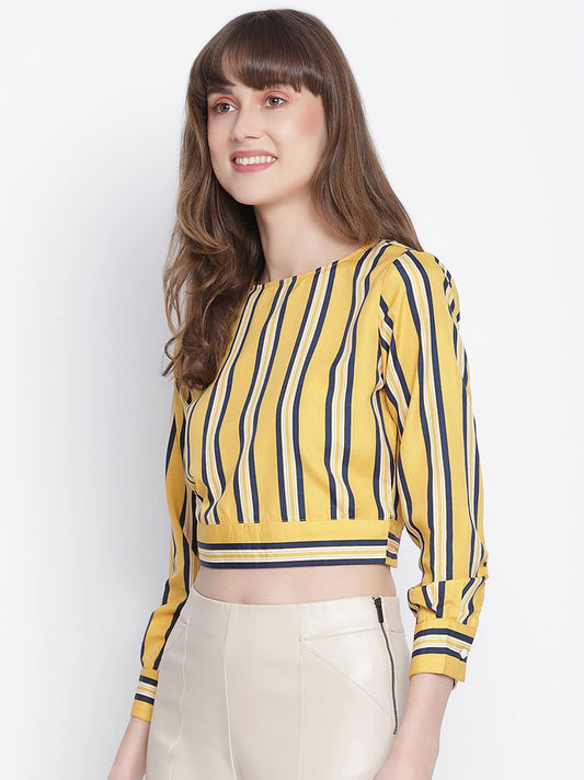 Draax Fashions Women Yellow Striped Full Sleeve Crop Top