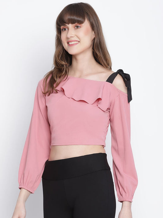 Draax Fashions Women Pink Full Sleeves Layered Crop Top