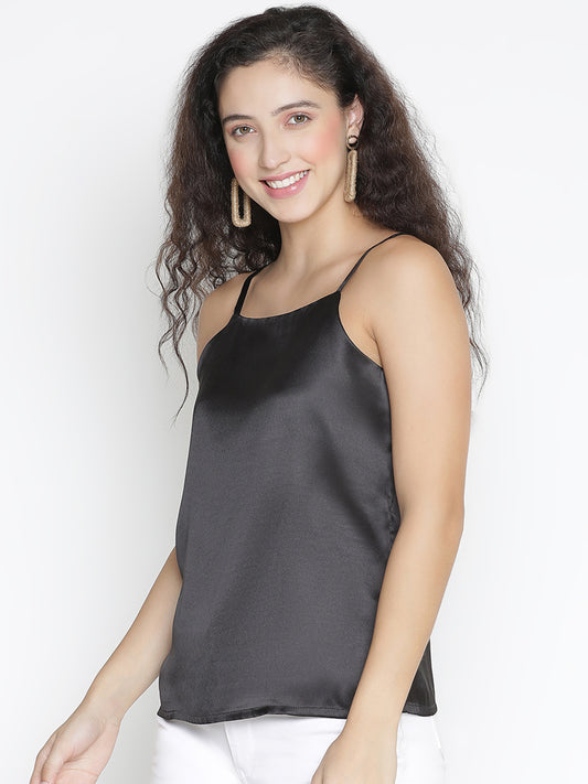 Draax Fashions Women Navy Blue Satin Spaghetti Top