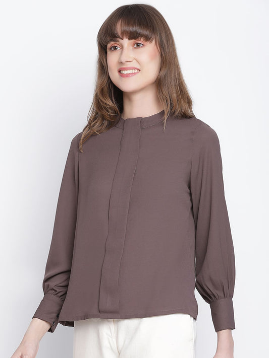Draax Fashions Women Grey Long Sleeves Front Pleat Top