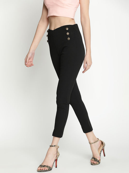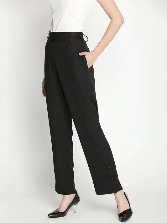 These trousers are a versatile addition to any wardrobe. Made from high-quality fabric, they offer both comfort and style. The slim fit design flatters the figure, while the classic color options make them easy to pair with any top. With their durable construction and timeless appeal, these trousers are perfect for both casual and formal occasions. Upgrade your wardrobe with these stylish and practical trousers. Get the best offers on women's trousers online.
