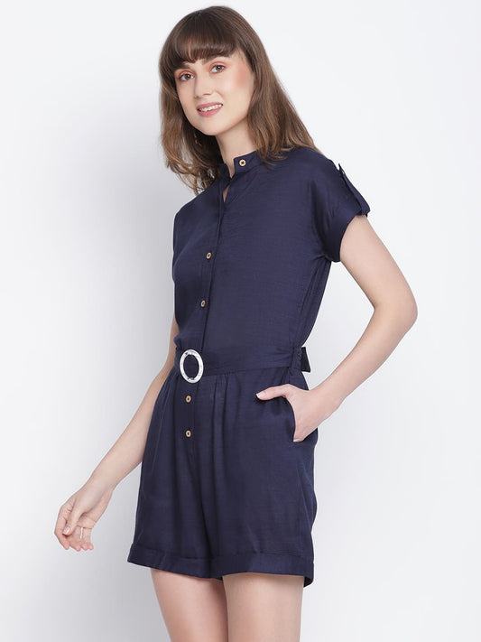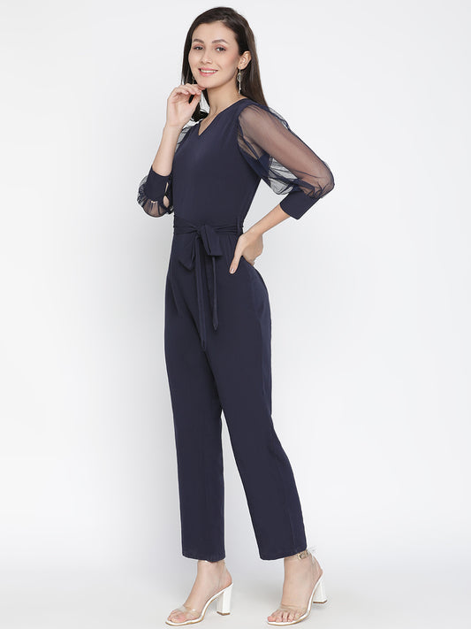 Draax Fashions Women Navy Blue Net Sleeves Jumpsuit