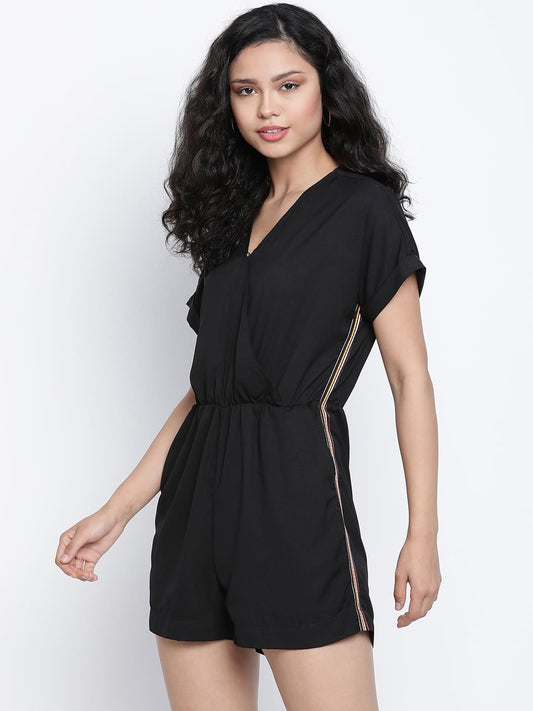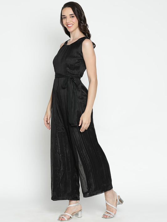 DRAAX FASHIONS Womens Round Neck Sleeveless Black Jumpsuit