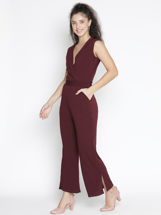 Draax Fashions Women Maroon Solid Cropped Wrap Jumpsuit