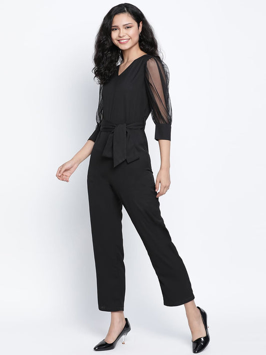Draax Fashions Women Black Ballon Net Sleeve Jumpsuit Dress