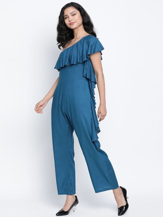 Draax Fashions Women Blue Solid Flare Jumpsuit Dress