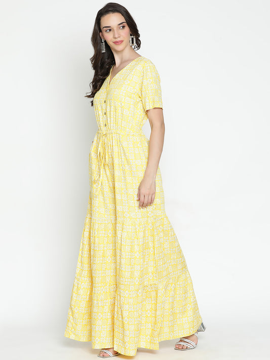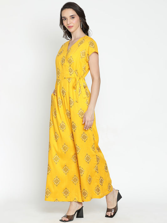 DRAAX FASHIONS Womens Yellow Printed Short Sleeves Jumpsuit