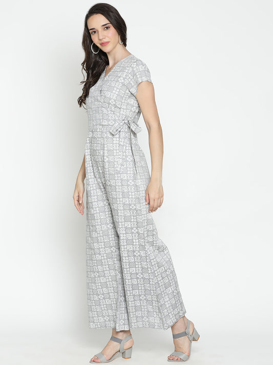DRAAX FASHIONS Womens Grey Printed Short Sleeves Jumpsuit