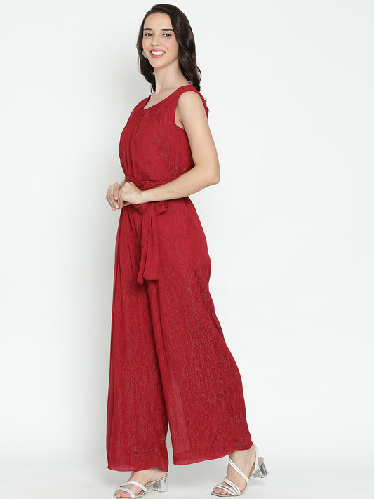 DRAAX FASHIONS Womens Round Neck Sleeveless Red Jumpsuit