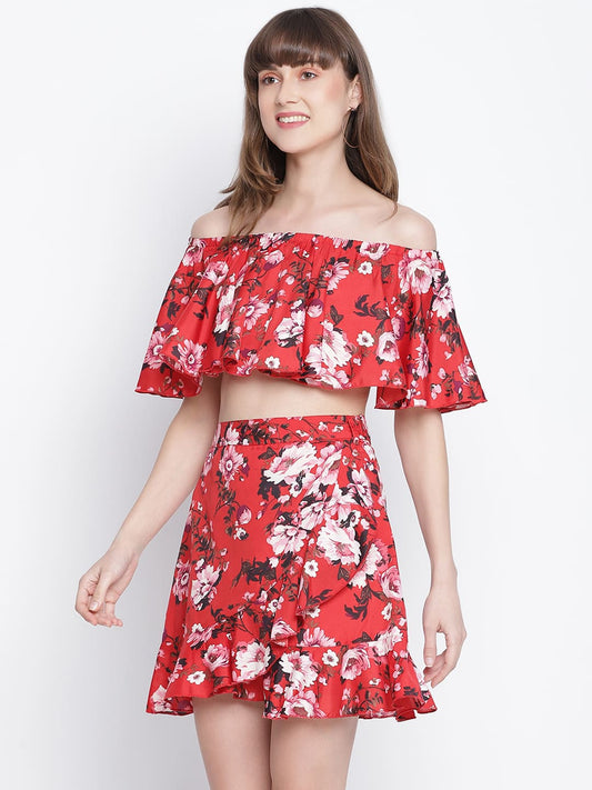 Draax Fashions Women Red Floral Co-Ord Dress