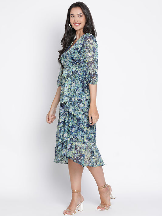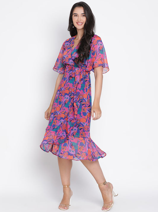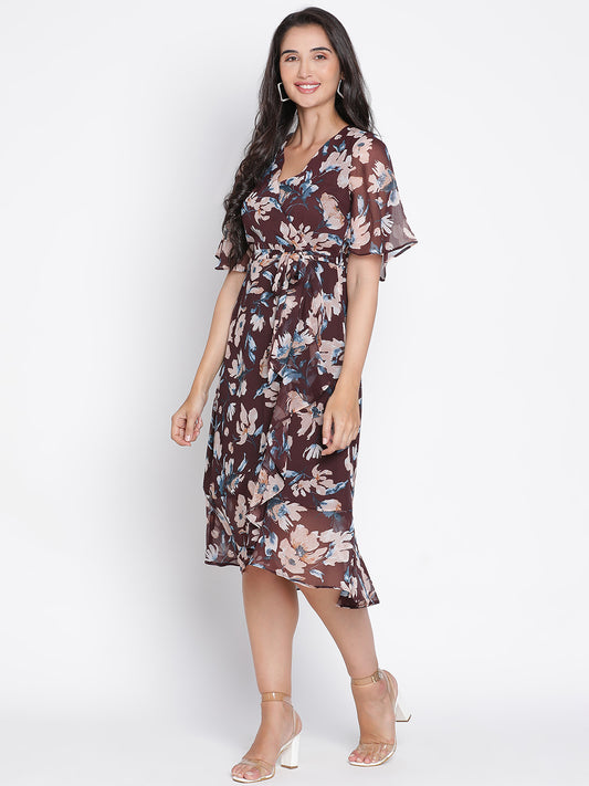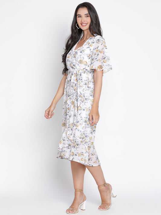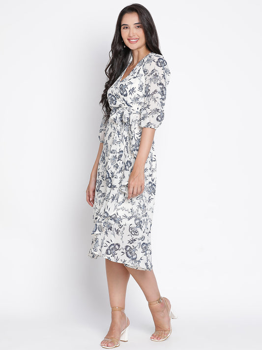 Draax Fashions Black & White Floral Printed Multicolor Dress