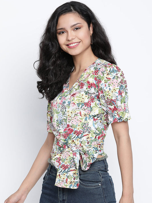 Draax Fashions Women Multi Colour Cinched Sleeve Top