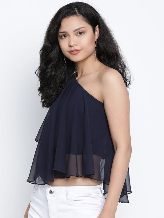 Draax Fashions Women Navy Blue Embellished A-Line Top