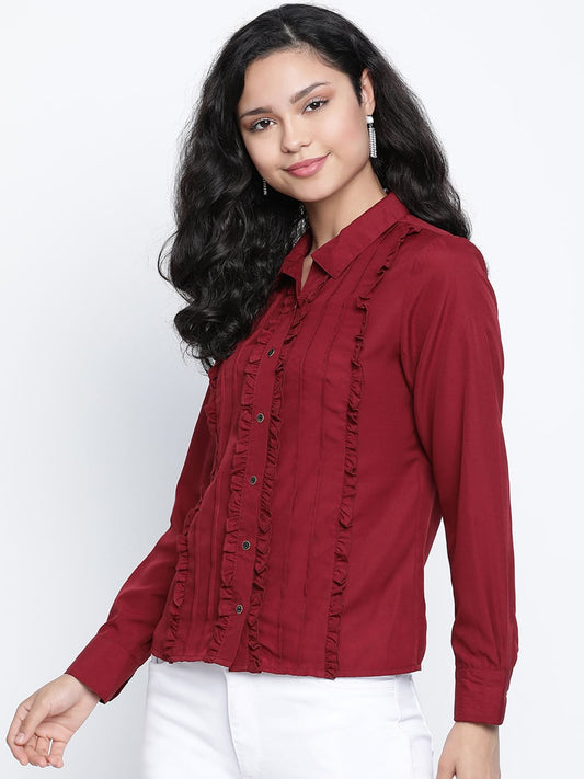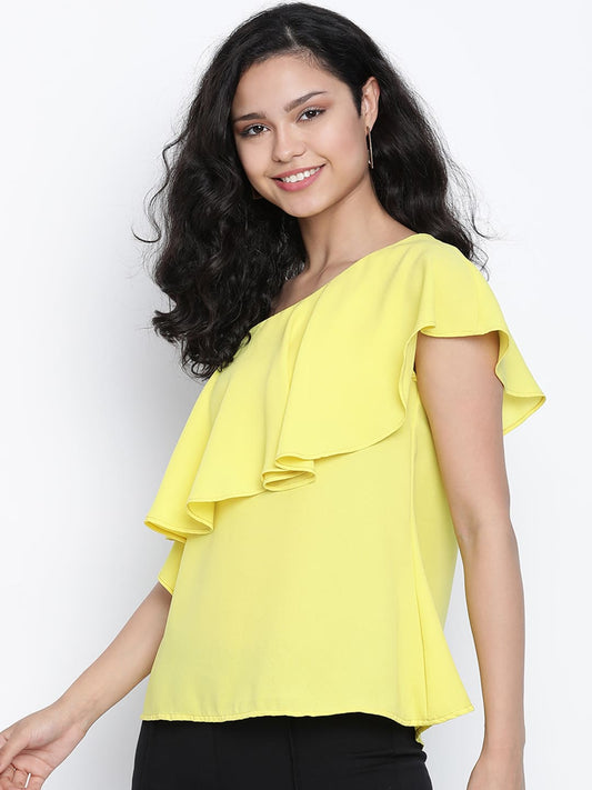 Draax Fashions Women Mustard Yellow Ruffle Top