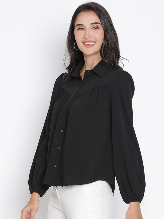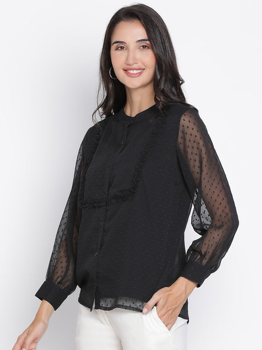 ड्रेक्स फैशन ब्लैक रेगुलर फ्रंट बटन क्लोजर टॉप