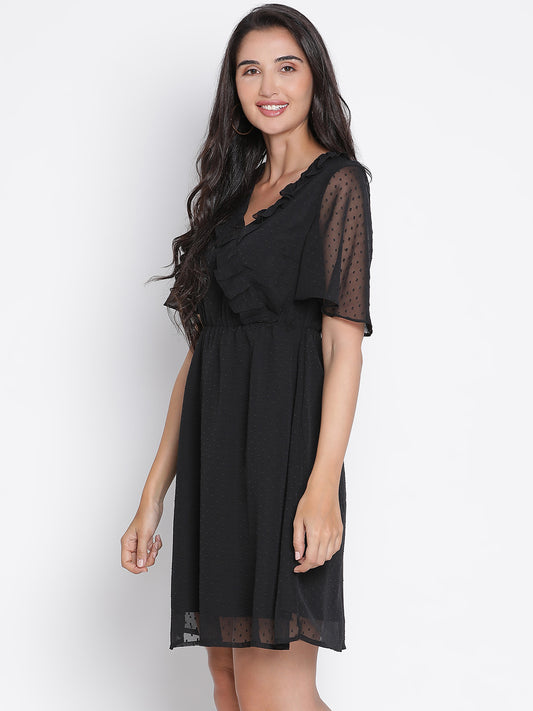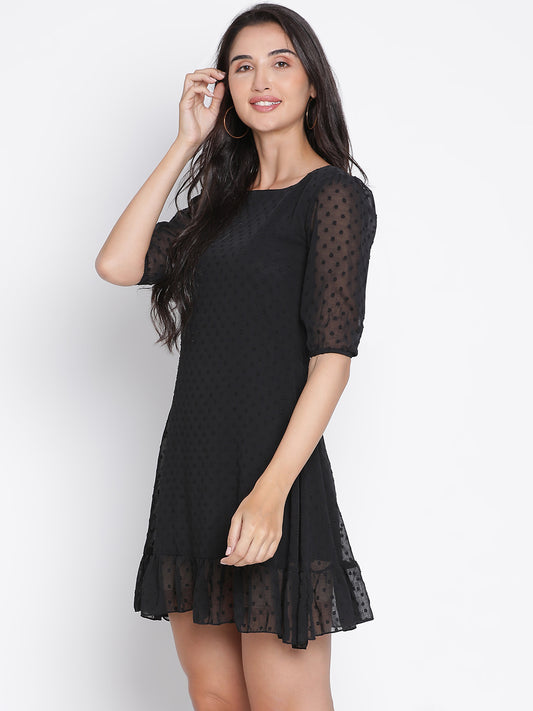 ड्रेक्स फैशन ब्लैक सॉलिड मिनी ड्रेस