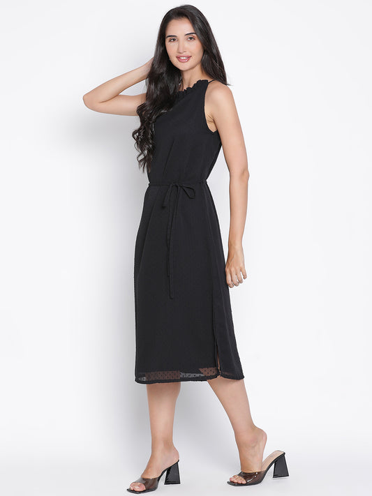 ड्रेक्स फैशन ब्लैक नेक नॉट टाई ड्रेस