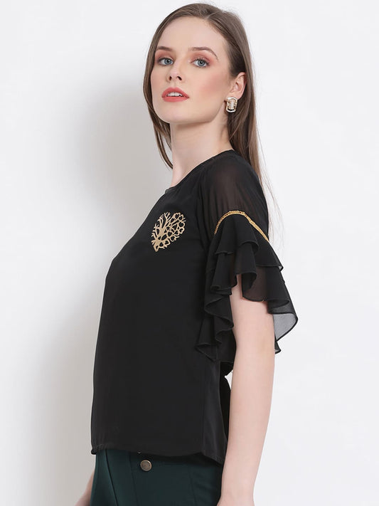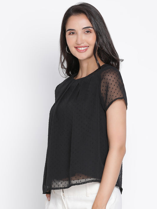 ड्रेक्स फैशन ब्लैक शॉर्ट स्लीव्स रेगुलर टॉप