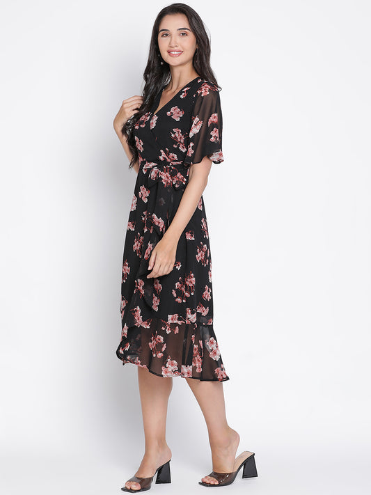 ड्रेक्स फैशन ब्लैक फ्लोरल ड्रेस