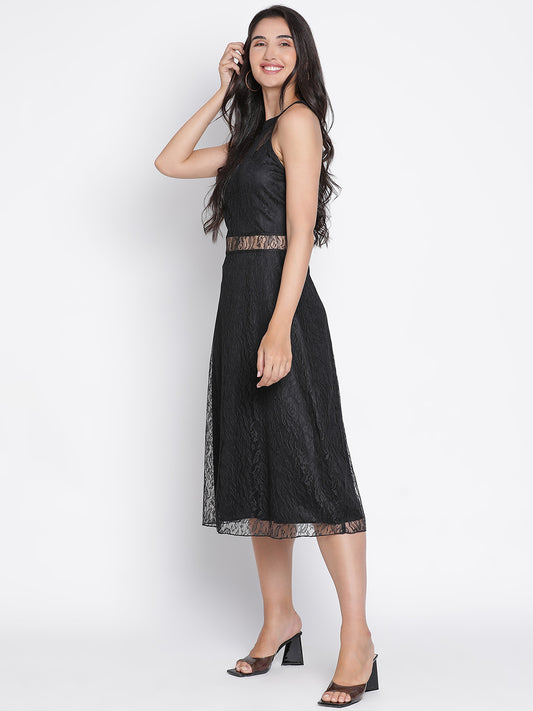 ड्रेक्स फैशन ब्लैक फिट और फ्लेयर ड्रेस